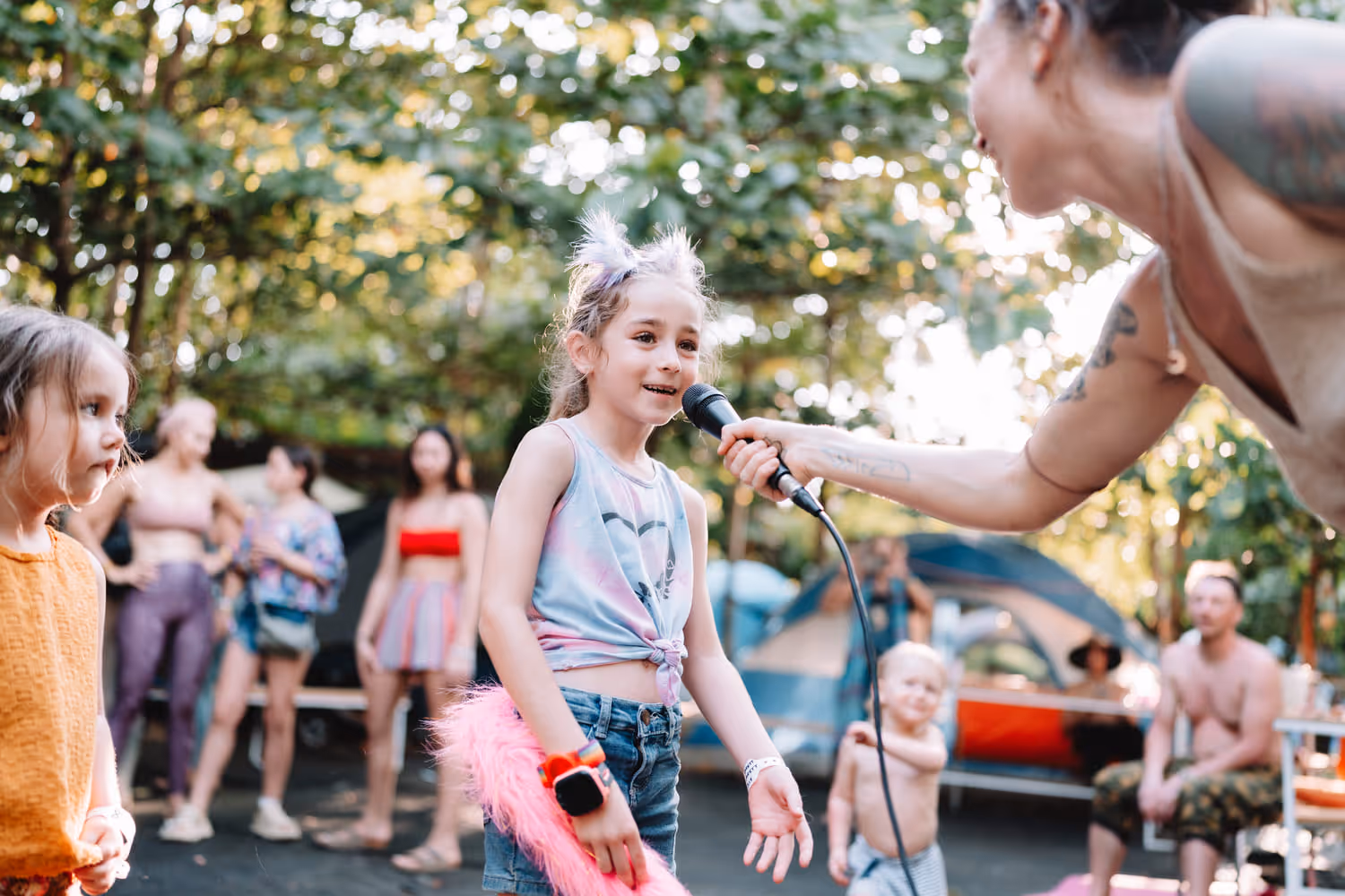 Quiet Level: A peaceful backdrop of jungle sounds and children — one of the quietest zones on site.